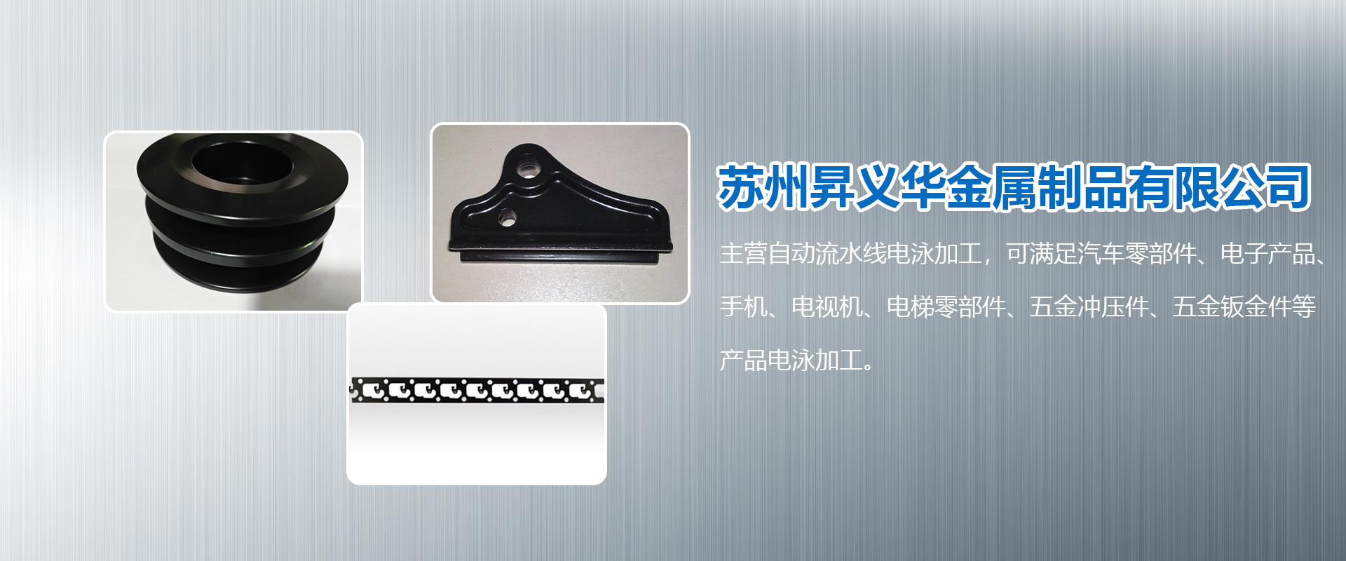 蘇州昇義華金屬制品有限公司是一家進行各類金屬表面處理專業(yè)公司。主營自動流水線電泳加工,可滿足汽車零部件、電子產品、手機、電視機、電梯零部件、五金沖壓件、五金鈑金件等產品電泳加工。